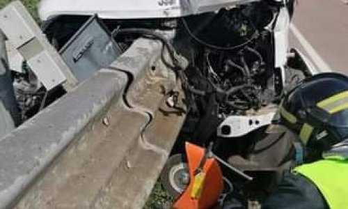 Il guardrail ha trafitto l'automezzo. Fortunatamente le condizioni dei tre occupanti non sono gravi