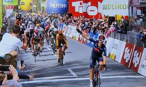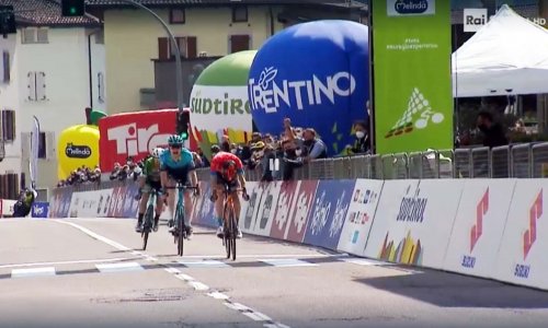 Seconda vittoria in volata per il ciclista di Livo al Tour of the Alps 2021. Domani passaggio nelle valli di Non e Sole