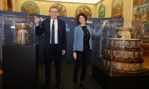 Sabato e domenica i due trofei conquistati dalle nazionali azzurre di tennis saranno esposte in Sala Depero