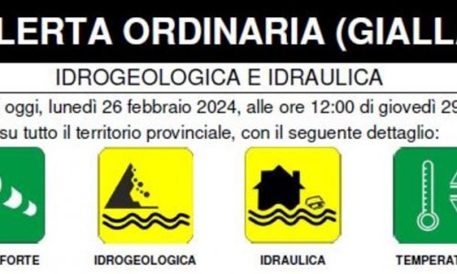 Dalle ore 17:00 di oggi, lunedì 26 febbraio 2024, alle ore 12:00 di giovedì 29 febbraio 2024 su tutto il territorio provinciale