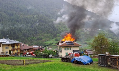 Sono in corso le operazioni di spegnimento del falò ad opera dei pompieri di Commezzadura, Mezzana, Dimaro, Monclassico, Malé e Madonna di Campiglio
