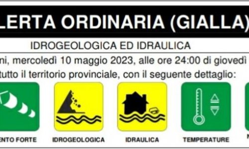 Dalle ore 7 di oggi, mercoledì 10 maggio 2023, alle ore 24 di giovedì 11 maggio 2023 su tutto il territorio provinciale