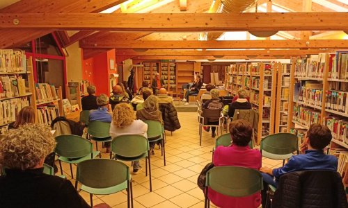 Attento pubblico alla presentazione del libro di Adel Jabbar e Nora Lonardi nella biblioteca comunale