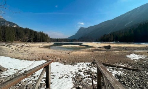 La siccità ha causato un notevole calo del livello dell"acqua facendo emergere aree solitamente coperte