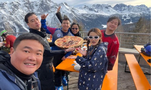 I turisti thailandesi a Campiglio con il loro beniamino Nicola Zanon