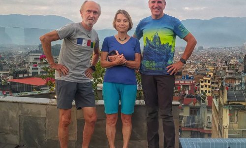 L"ex bancario è ora in Nepal con gli amici tedeschi Karin e Uli Rauner