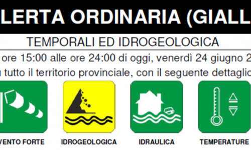 Dalle ore 15 alle ore 24 di oggi su tutto il territorio provinciale