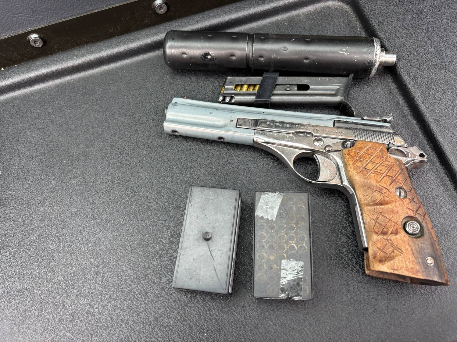 Al momento del fermo, il soggetto aveva con sè (nascosta sotto il sellino della moto su cui viaggiava) una pistola cal. 22 carica e munita di silenziatore, con matricola abrasa.