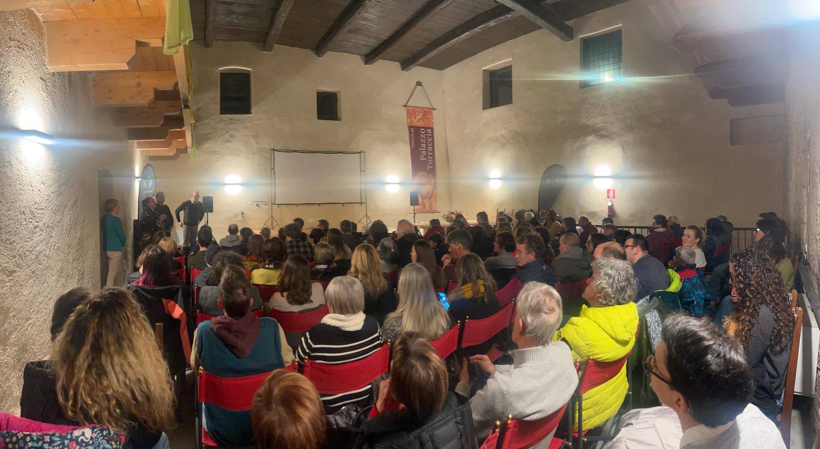 Sala Maria Teresa di Terzolas piena per la presentazione del cortometraggio di Gsh e Nuovaera film