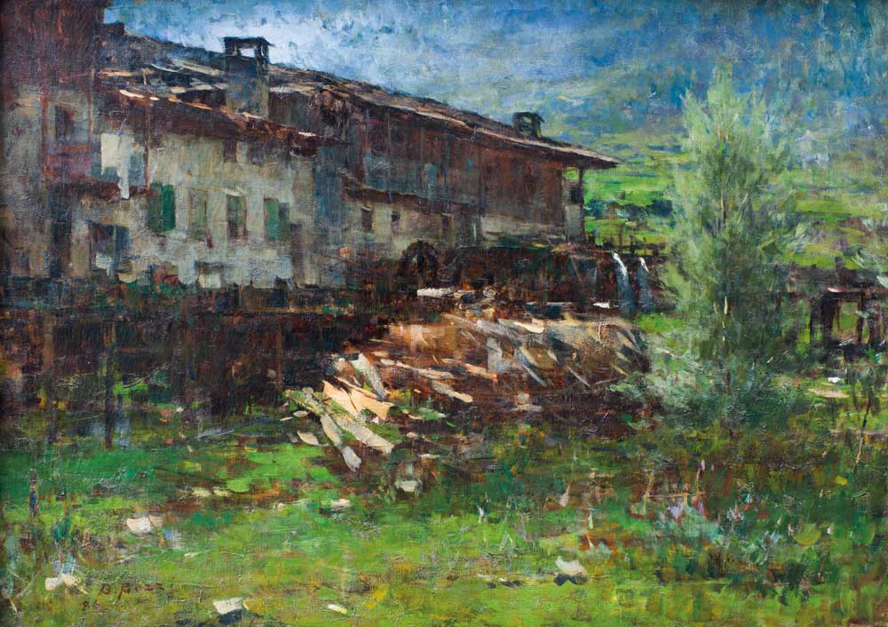 CANALE DI TENNO. Vi è anche un"importante opera di Bartolomeo Bezzi, Segherie in Val di Sole, del 1886, tra quelle esposte nella mostra Perle d'arte. La collana degli artisti trentini, allestita nella Casa degli Artisti G. Vittone di Canale di Tenno.