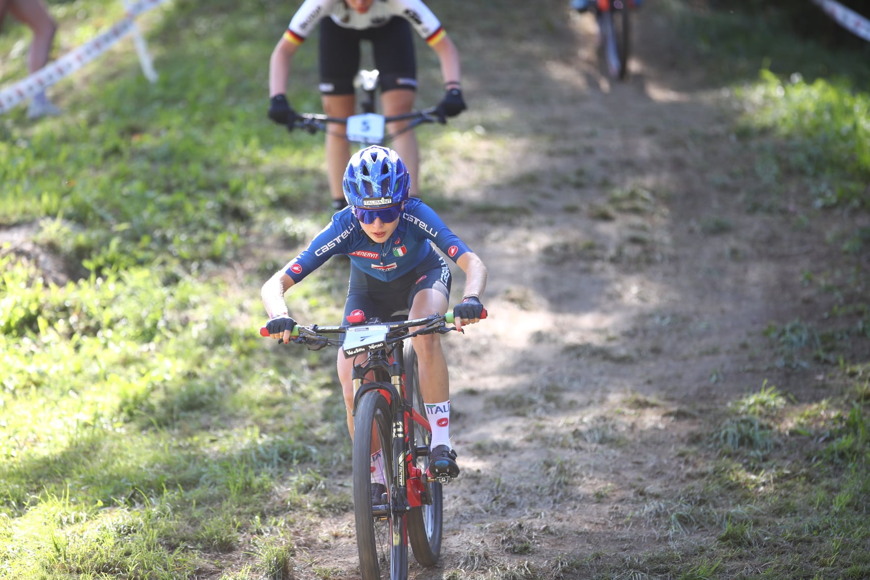 DAOLASA. Prima medaglia per l"Italia nella seconda giornata dei campionati mondiali di Mtb in corso di svolgimento a Daolasa, nel comune di Commezzadura. A conquistarla, nella prova di Cross Country donne junior è stato la la bergamasca Sara Cortinovis, splendido bronzo dietro la vincitrice francese Line Burquier e un"altra atleta transalpina, Olivia Onesti.
