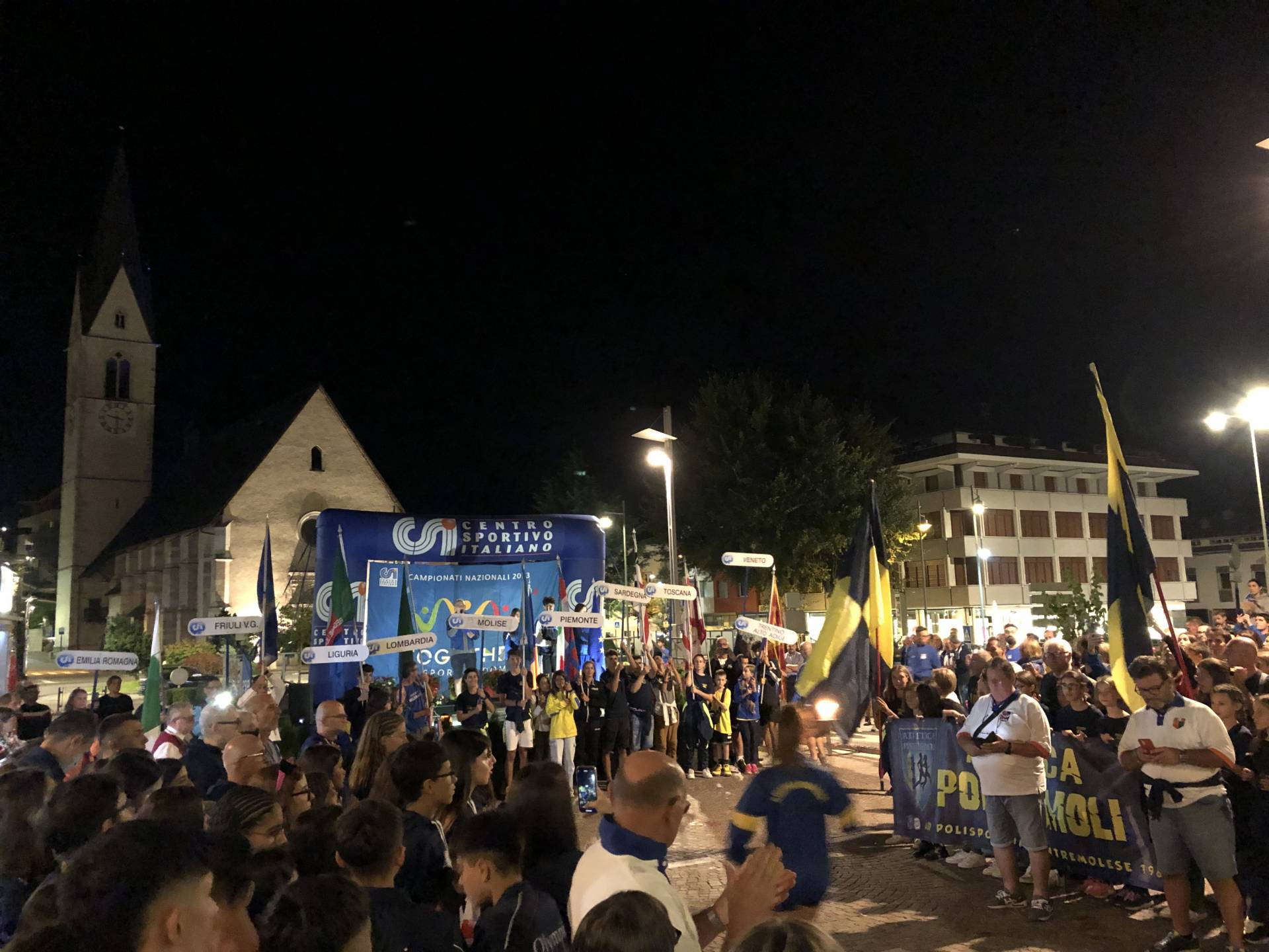 CLES. È stato inaugurata a Cles, giovedì 7 settembre, la fase finale del 25° Campionato Nazionale di Atletica del Centro Sportivo Italiano. Per le vie del capoluogo noneso un"orda festosa di atleti e tecnici ha sfilato con i vessilli delle proprie squadre fino alla piazza della chiesa, dove è stato acceso il tripode, che ha decretato l"avvio della manifestazione.