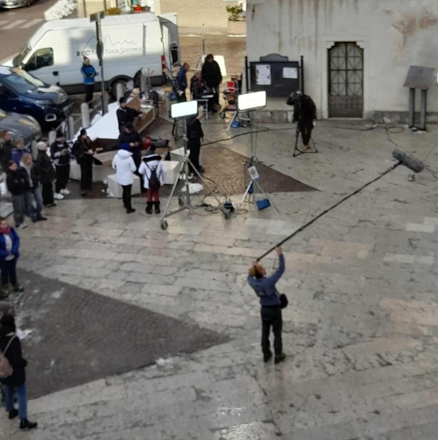 MALÈ Risveglio particolare questa mattina per gli abitanti della Borgata di Malé, con la piazza Regina Elena che è diventata un set cinematografico. Tutti a cercare "Un posto al sole", la storica soap italiana che da Napoli è arrivata in Val di Sole.