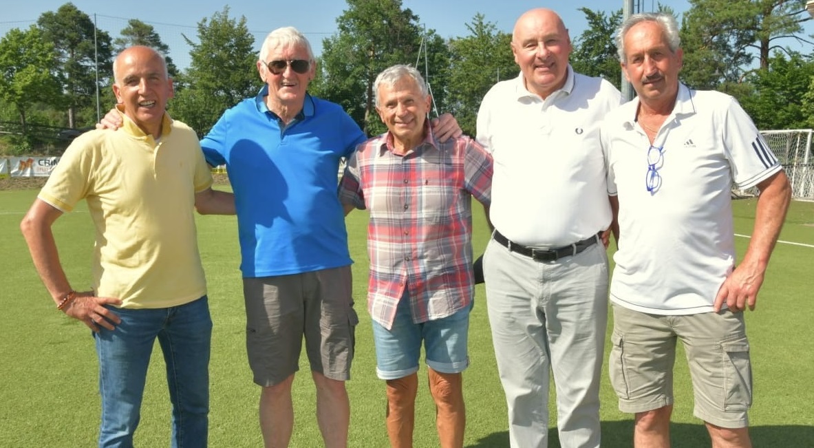 Da sinistra ecco quindi Romedio Menghini, Flavio Baggia, Guido Ghirardini e Franco Stanchina; in mezzo a loro, classe 1943, l"aretino Marcello Scali, protagonista nel calcio professionistico negli anni Sessanta, tanto da debuttare in serie A con la maglia della Spal nel 1963, contro il Venezia (1-1).