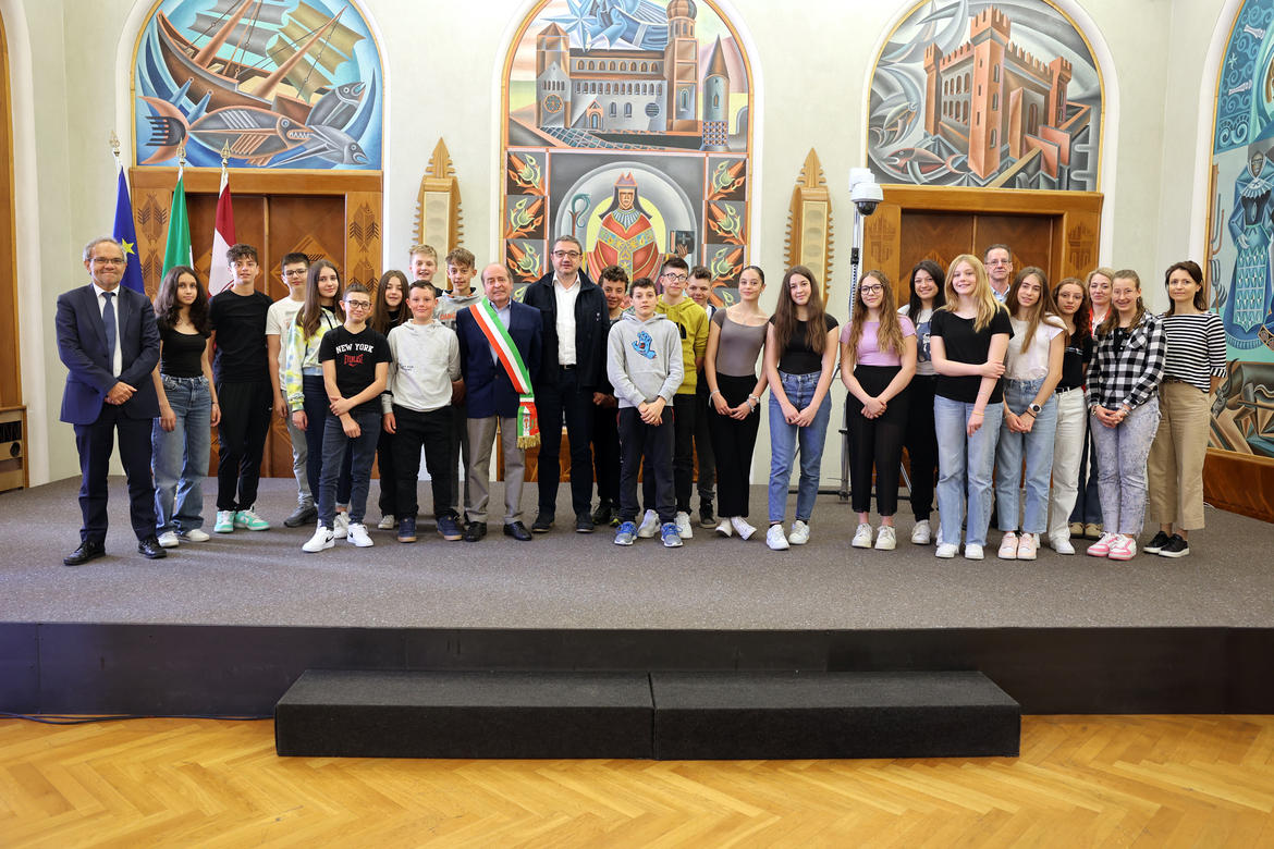 IIIA della scuola media di Ossana e il presidente della Provincia autonoma di