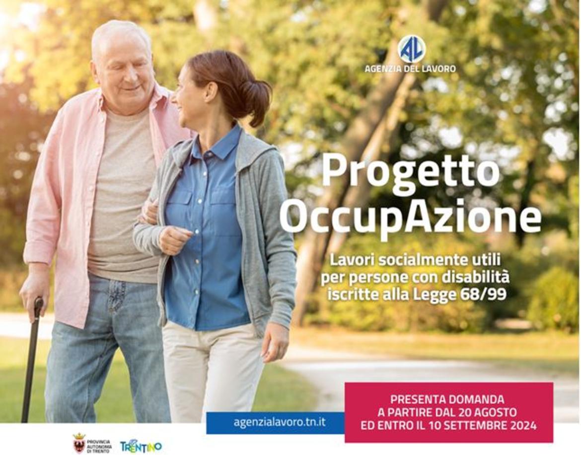 Il Progetto OccupAzione - riconosciuto come intervento 3.3.F del Documento degli interventi di politica del lavoro di Agenzia del Lavoro - è un"iniziativa che mira a favorire il recupero sociale e l'accrescimento delle competenze di persone con disabilità attraverso il loro inserimento presso Enti pubblici nel settore dei servizi alla persona.